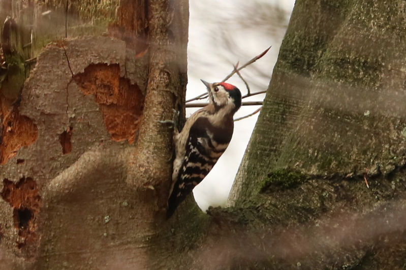 vlnr: De Kleine Bonte Specht, De Grote Bonte Specht mannetje & De Grote Bonte Specht vrouwtje